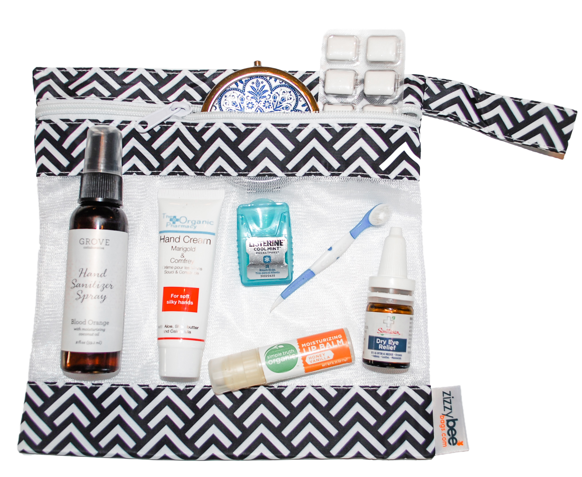 ZizzyBee Bags are reusable, washable mesh travel or storage bags that come in trendy and modern designs with a zipper and easy hang or hold loop.